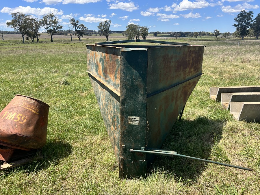 Equipment: Feed troughs, 6 x 3800HD Advantage Cattle Feeders, 3 x Jurd Cattle feeders, Water tank for truck, 2 x Cattle grids, Gallagher Sheep scales, Portable loading ramp new floor, Assorted bore casing, Rhodes Engineering feed out bin, 3pl cement mixer, lamb marking cradle, 2 x sheep feeder, hay feeder, assorted portable cattle panels and gates, Hardi Boom Spray Cadet 300, Morrisey calf race and sliding gates, Lincoln Weldanpower generator 230+, Electric Toolex air’compT20 70ltr,Carry all, Fuel trailer 2000ltr with Honda motor,3pl post-driver